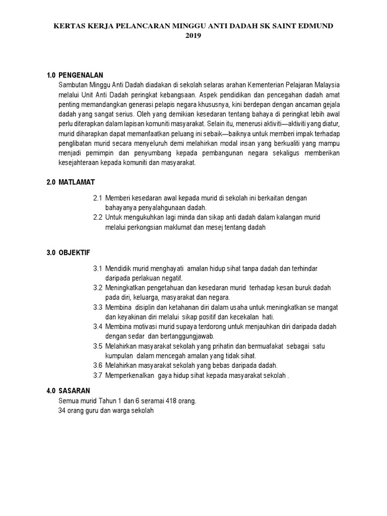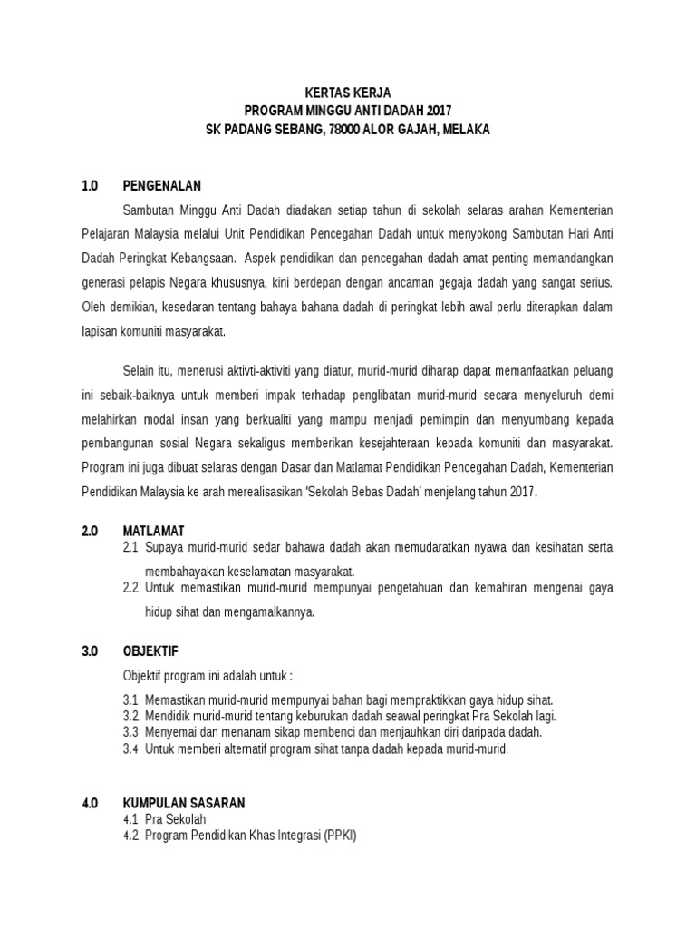 Contoh Kertas Kerja Mudah Kempen Anti Dadah Pdf